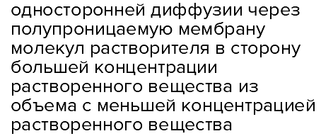 Осмос (от греч. ὄσμος — толчок, давление) — процесс односторонней диффузии через полупроницаемую мембрану молекул растворителя в сторону большей концентрации растворенного вещества из объема с меньшей концентрацией растворенного вещества