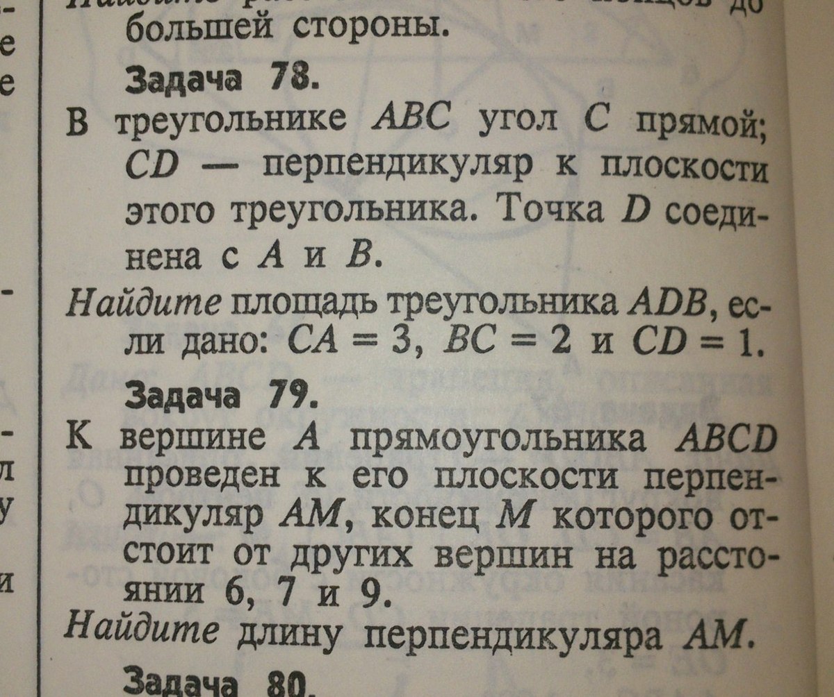 В треугольнике АВС угол С прямой; CD - перпендикуляр к плоскости этого треугольника. Точка D соединена с А и B.