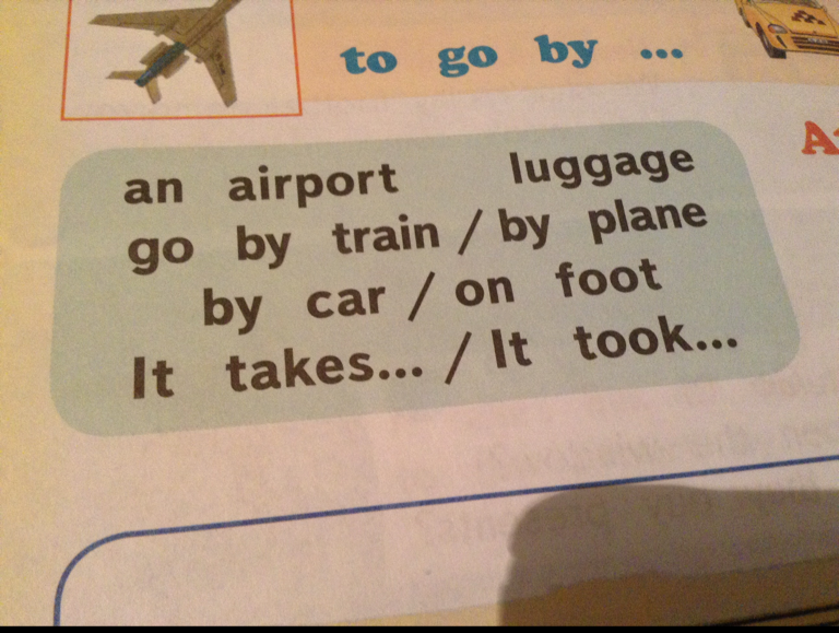 в аэропорту, багаж,сделать на поезде, на самолете, на автомобиле, пешком,это занимает..., он принял...