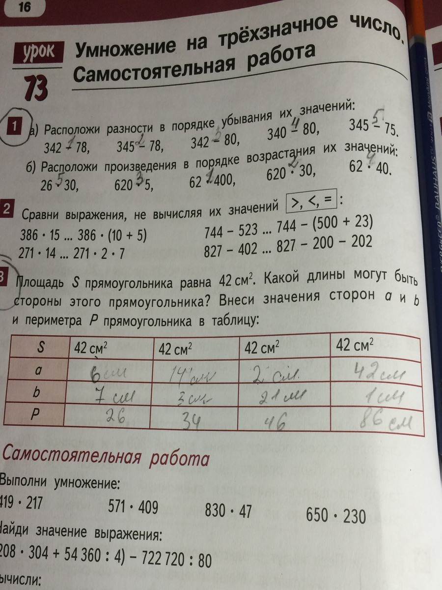 Все предельно просто. Под сторонами а и b пишешь два числа, произведение которых дает нужную площадь по условию (в твоем случае 42).