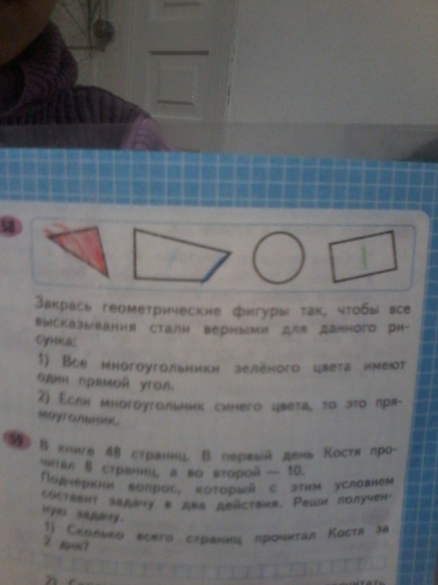закрась геометрические фигуры так , чтобы все высказыания стали верными для данного рисунка