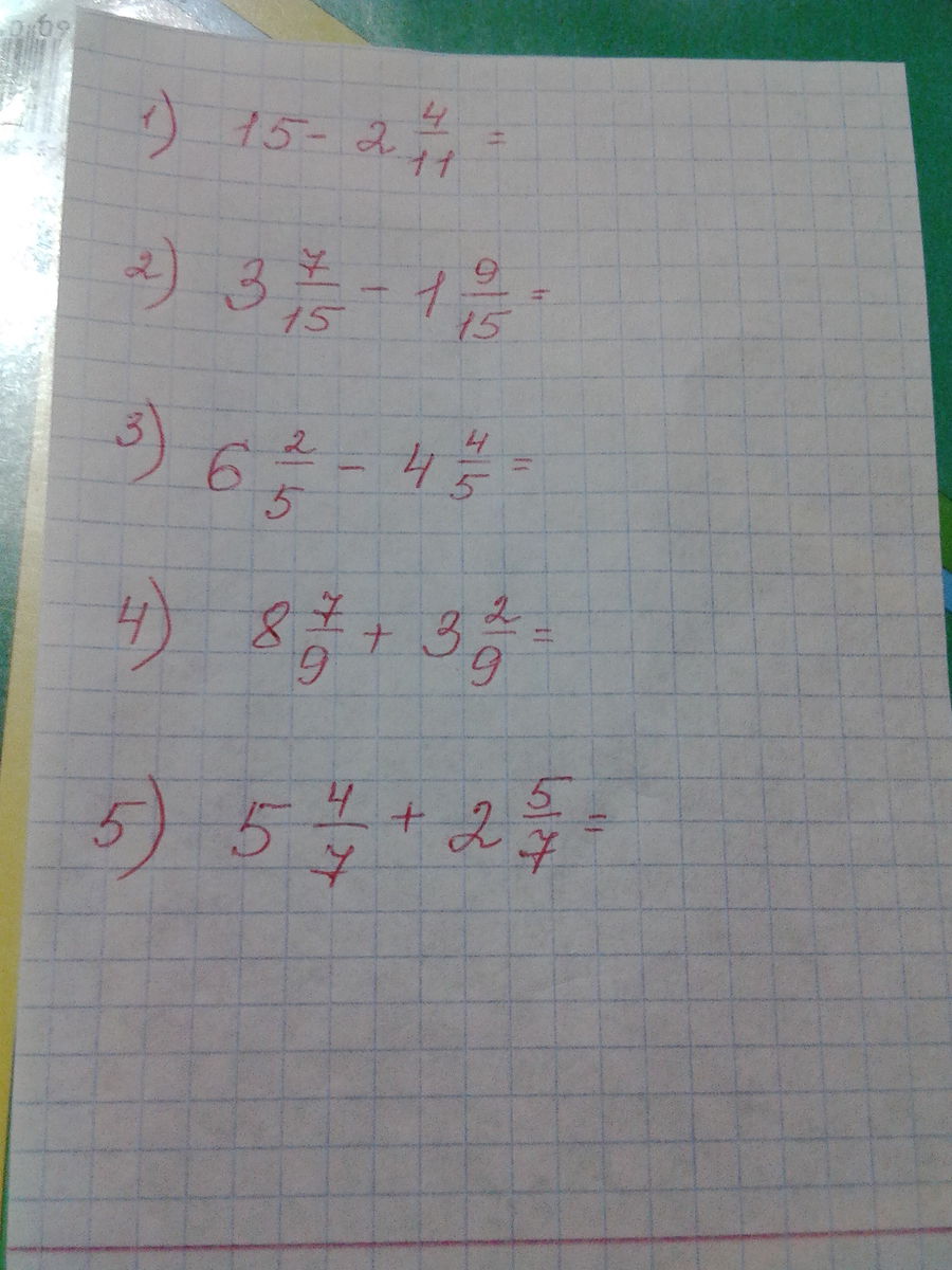3)6 2/5-4 4/5=5 7/5-4 4/5=1 3/5