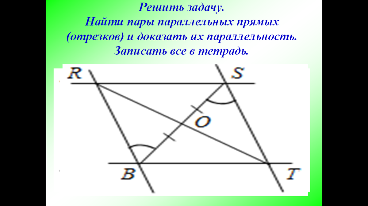 найти пары параллельных прямых(отрезков) и доказать их параллельность.