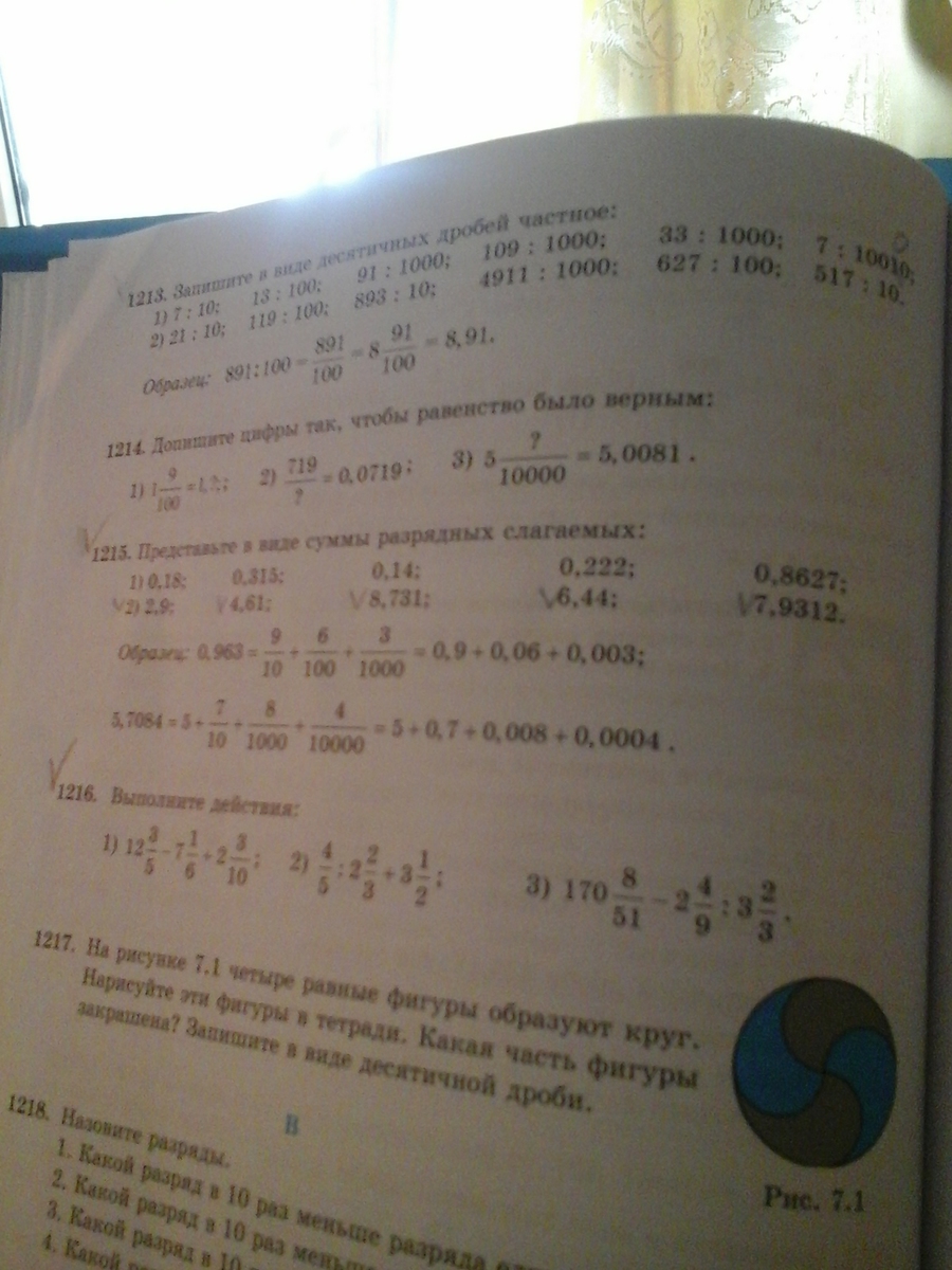 Представьте в виде суммы разрядных слагаемых номер 1215 то что выделено карандашом