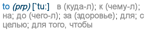 в (куда-л); к (чему-л); на; до (чего-л); за; для; с целью; для того, чтобы;