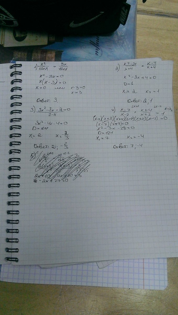 3) Уравнение равносильно системе: 3х² - 5х -2 = 0, 2 - х ≠0.