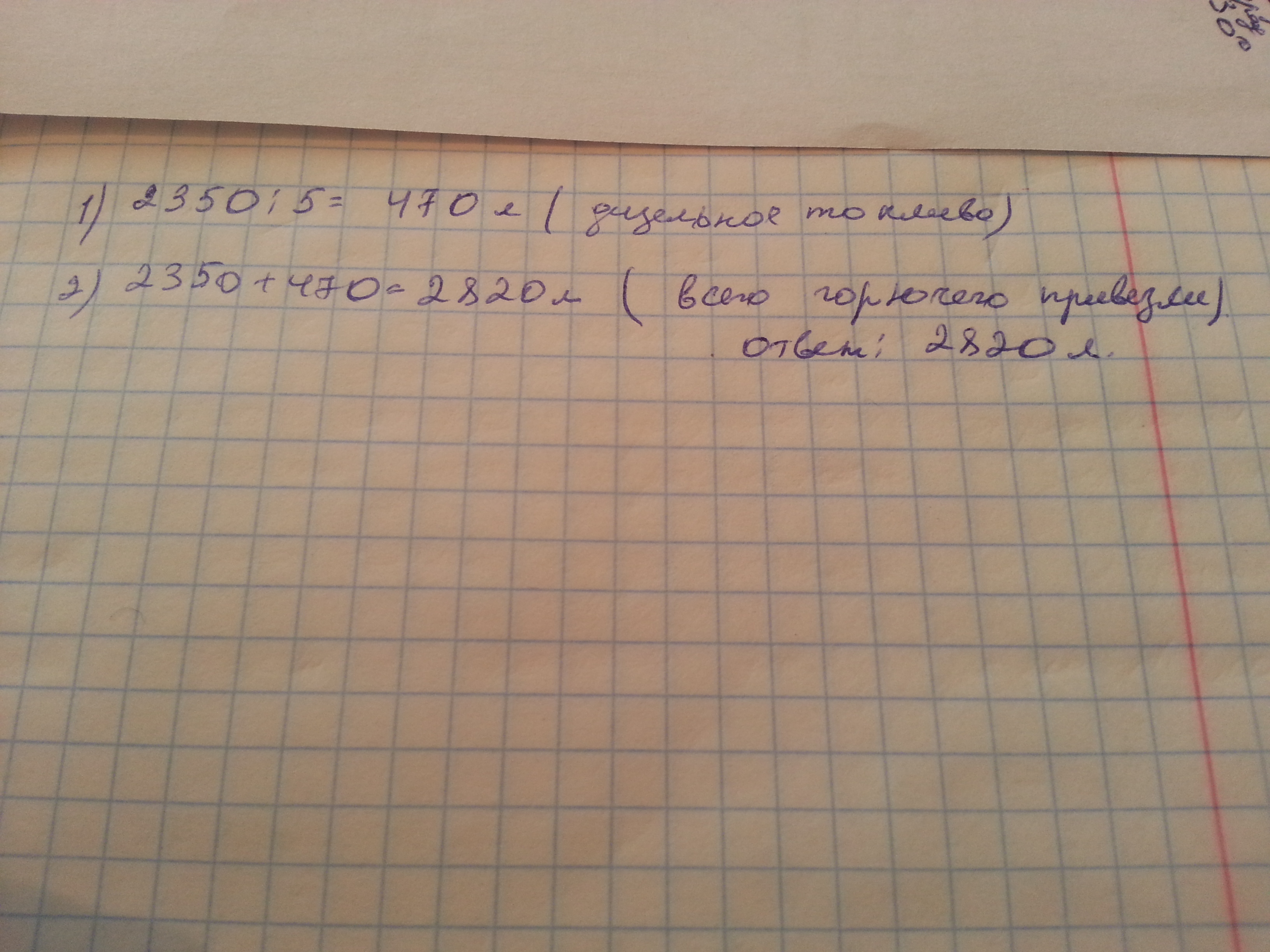 На авто заправочную станцию привезли 2350 л бензина,что в 5 раз больше,чем дизельного топлива .Сколько всего литров горючего привезли на автозаправочную станцию?