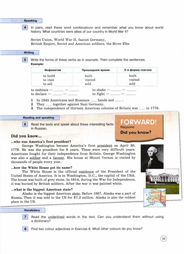 Джёрдж Вашингтон стал первым американским президентом 30 апреля 1779 года. Он был президентом на протяжение 8 лет. Это были очень тяжелые года. Американцы сражались за их независимость с Британией. Джёрдж Вашингтон был так же солдатом и фермером. Его дом в Моunt Vernon посещался тысячами людьми каждый год.