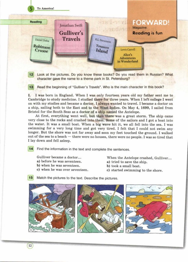 Я родился в Англии. Когда мне было 14 лет, мой отец отправил меня в Кембридж изучать медицину. Я учился там три года. Когда я закончил колледж, то продолжил свое обучение и стал доктором. Я всегда хотел путешествовать. Я устроился доктором на корабль, который плавал и в Ост Индию и в Вест Индию. 4 мая 1699 года я плыл из Бристоля в южные моря в качестве доктора на корабле под названием Антилопа.