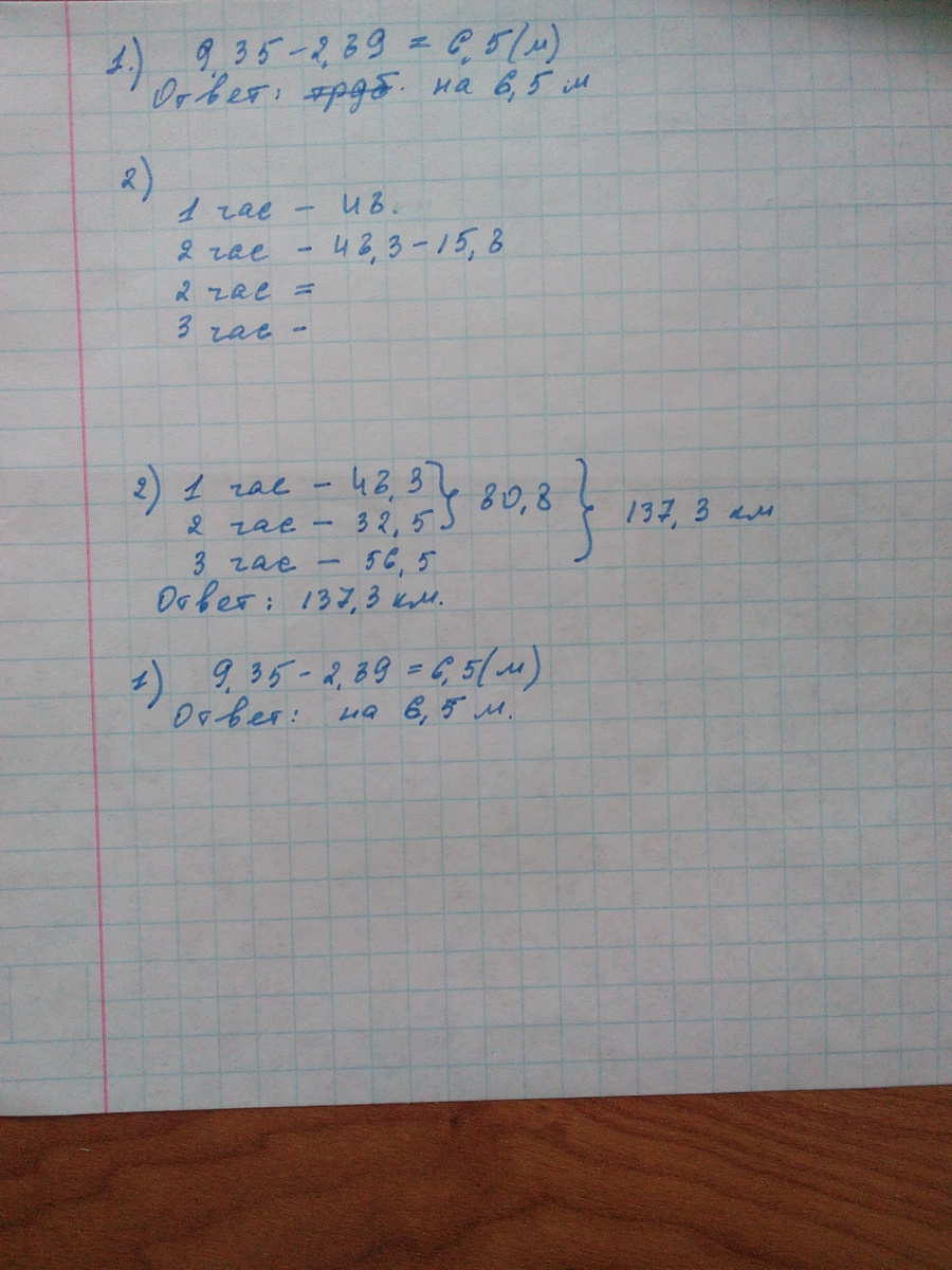 1)Трубу длинной 9,35 м разрезали на две части. Длина одной части 2,89 м. На сколько метров вторая часть длиннее первой?