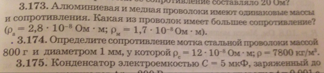 Номер 3.174|Определите сопротивление мотка стальной проволоки массы 800г и диаметром 1мм, у которой рс=12•10^-8 Ом•м, р=7800 кг/м^3