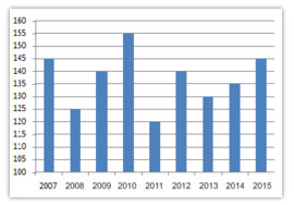 На диаграмме показано число учеников одной из школ. Определите общее число учеников в школе за последние пять лет.