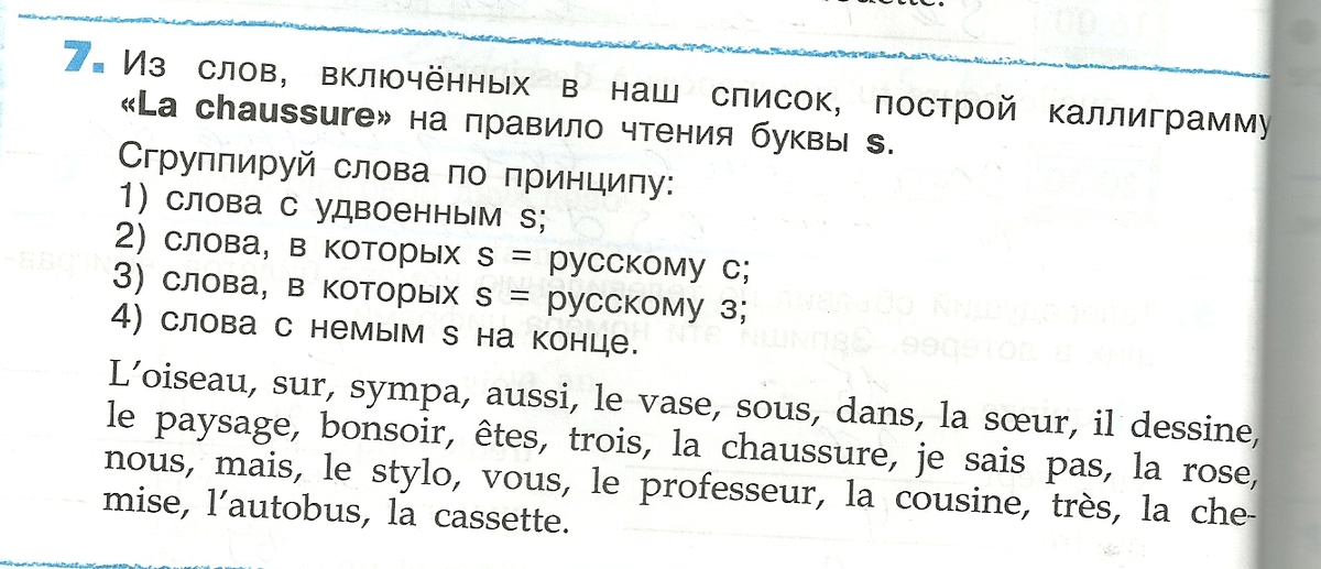 2. sur, sympa, sous, la soeur, bonsoir, le stylo
