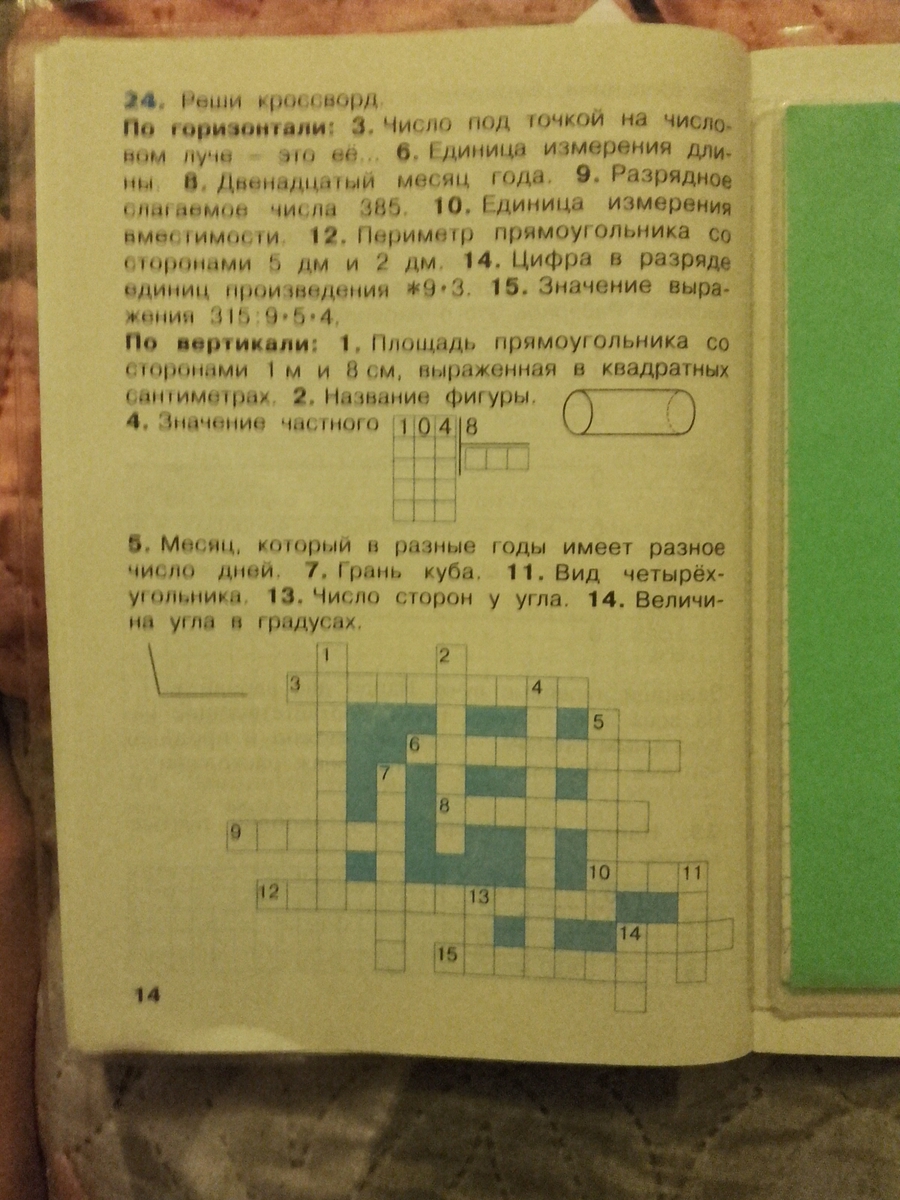 по вертикали:1.восемьсот,2.цилиндр,4.тринадцать,5.февраль, 7.квадрат,11 ромб,13.две,14.сто.