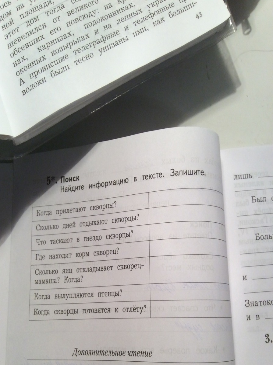 А где сам рассказ скворцы? Там же написано, что информацию нужно найти в тексте