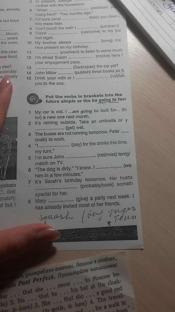 1 will be get 2 going to 3 will be 4 will not miss be 5 ? 6 going to probably cook 7 will be gave