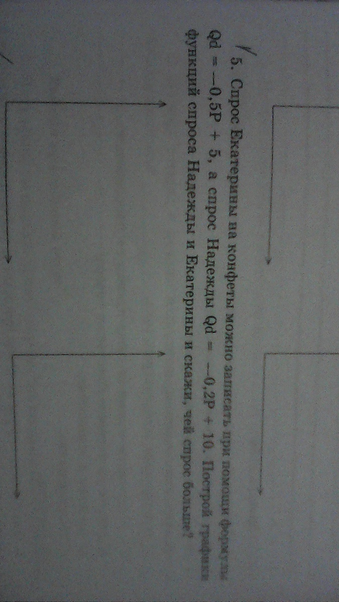 Спрос Екатерины на конфеты можно записать при помощи формулы Qd=_0,5P+5, а спрос Надежды Qd=_0,2P+10.Постройте графики функции спроса Надежды и Екатерины и скажите,чей спрос больше?