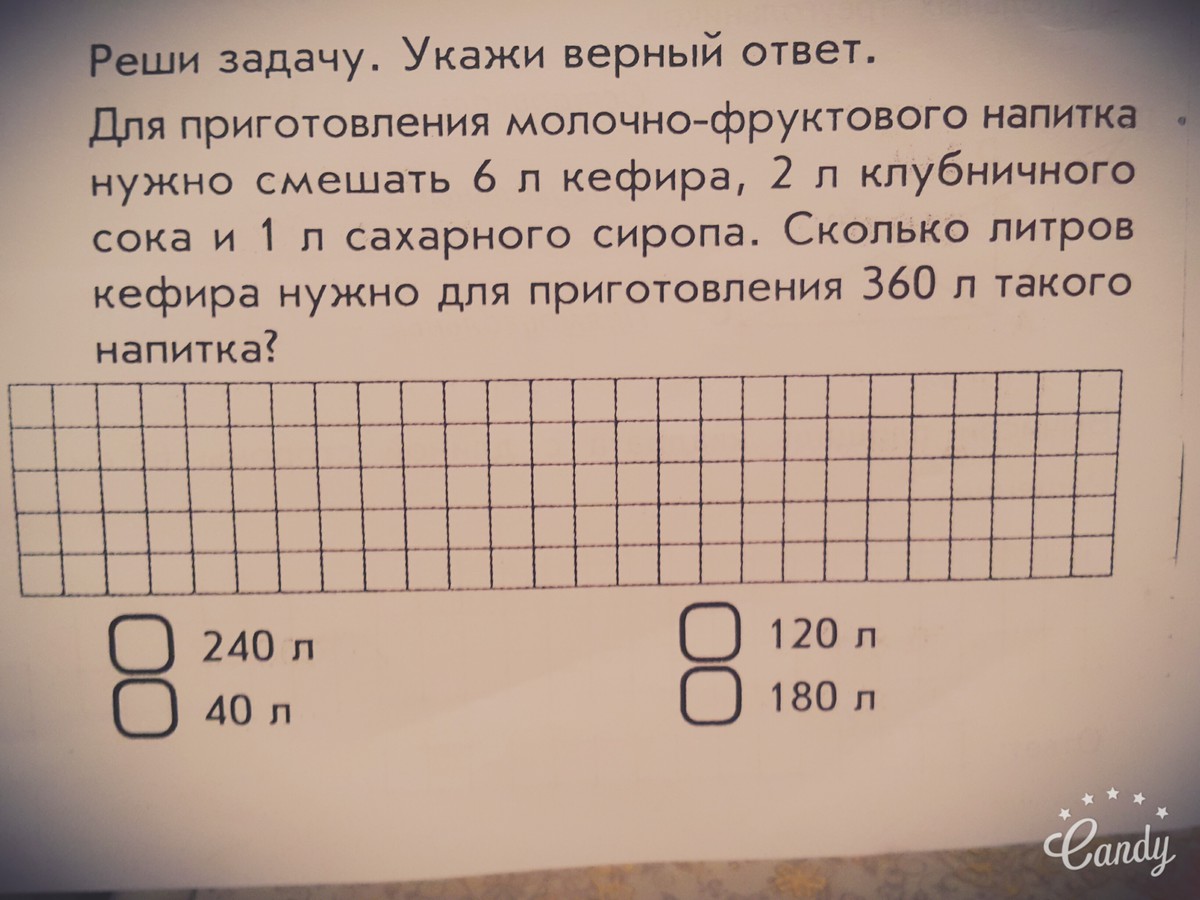 Ответ:40л кефира нужно для приготовления 360л такого напитка.