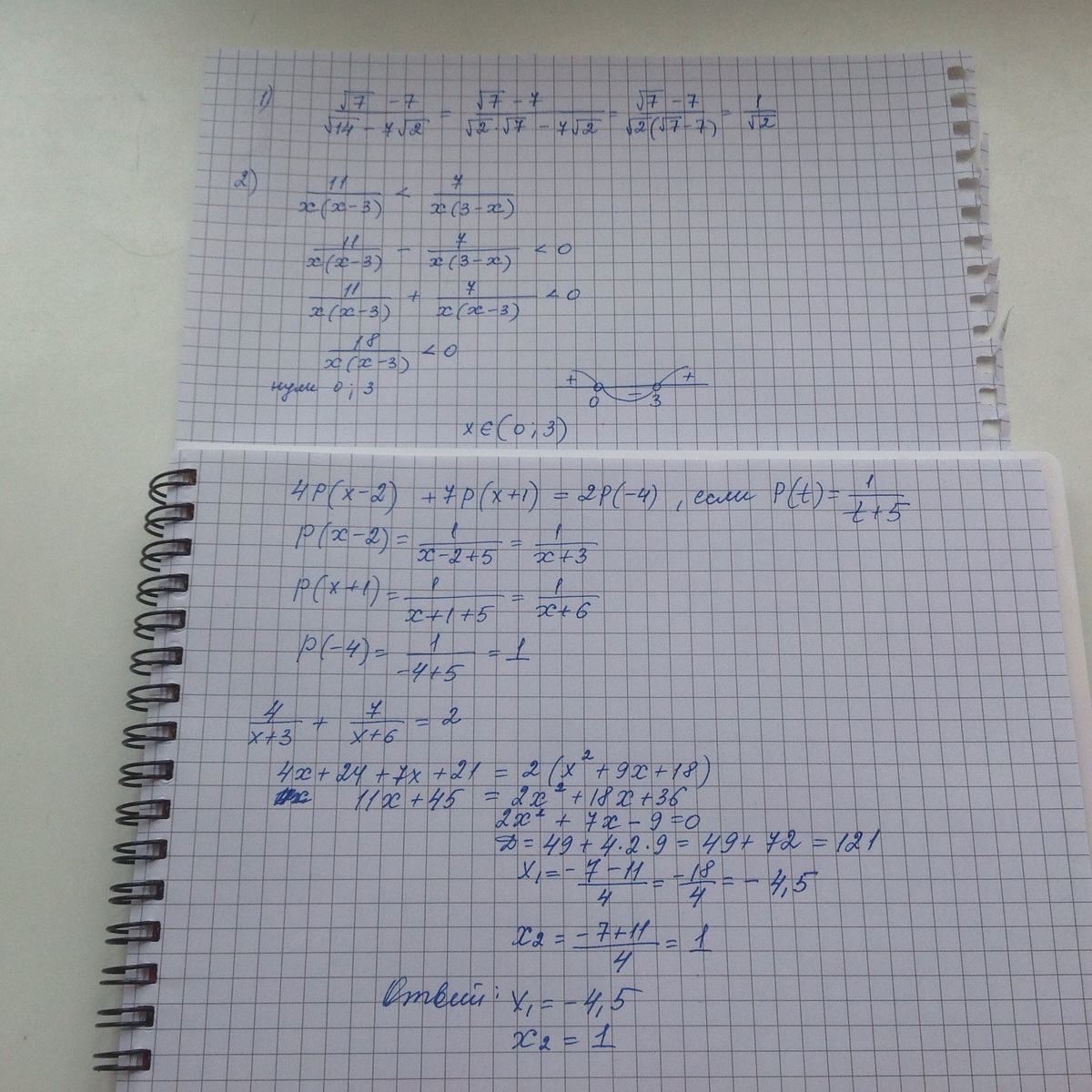 2,решите неравенство 11/x(x-3) < 7/x(3-x)