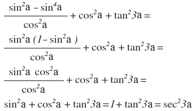 Sin квадрат альфа минус sin в четвертой альфа все это разделенное на cos квадрат альфа и к этому выражению приавить cos квадрат альфа + tg квадрат e3 альфа
