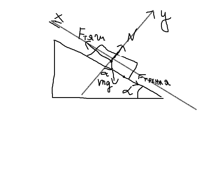 Итак, нарисуем рисунок и покажем все силы которые действуют на тело.