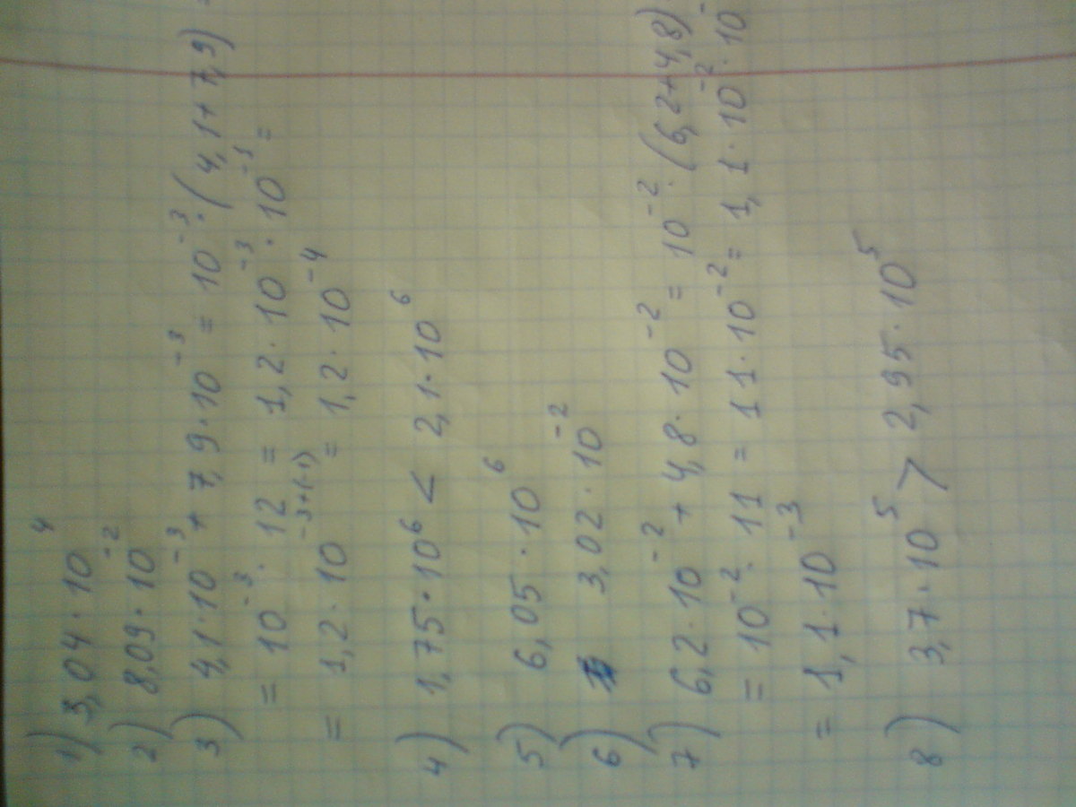 7) вычислите 6.2х10^-2 +4.8х10^-2 и представьте виде результат в стандартном виде