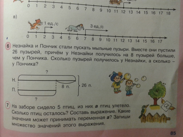 1)26-8=18(п) 2)18:2=9(п)у Пончика. 3)9+8=17(п)у Незнайке.