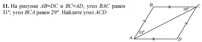 На рисунке AB=DC и BC=AD, угол BAC равен