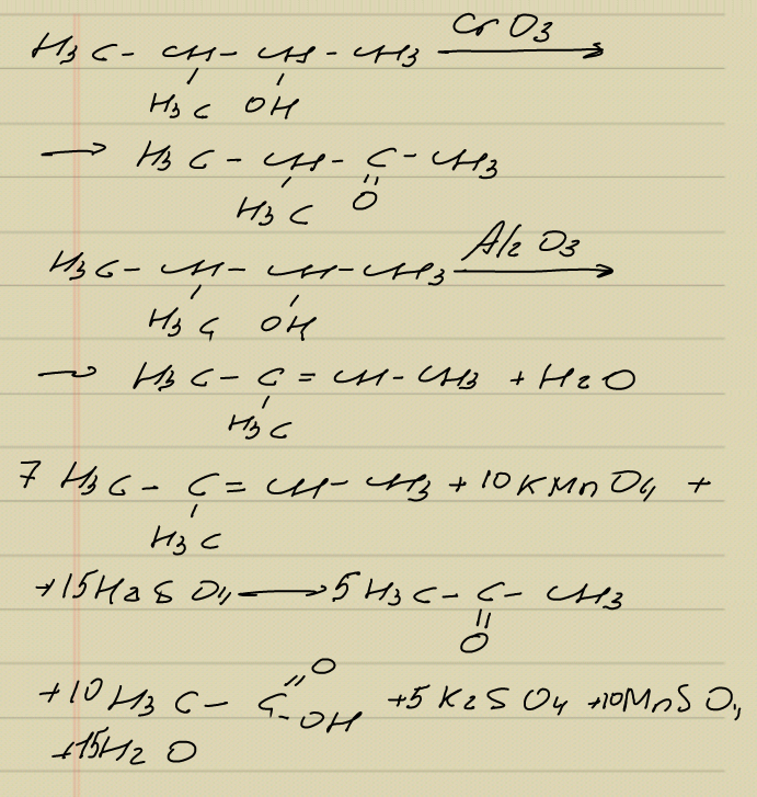 потом этот алкен,связь рвется=ацетон и кислота уксуснач