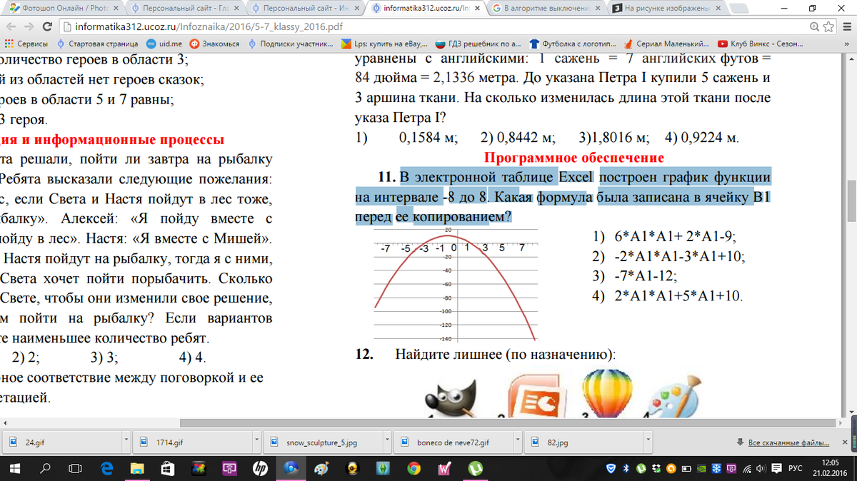 на интервале -8 до 8. Какая формула была записана в ячейку B1