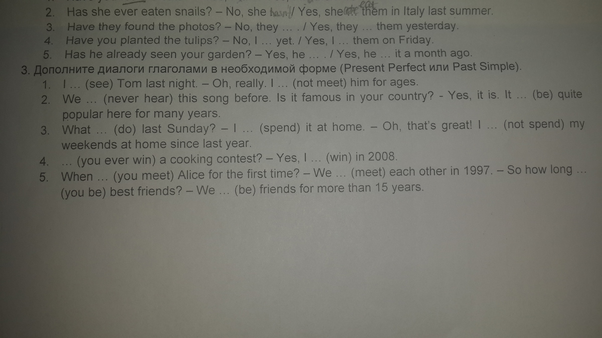 5.did met, met,have been,have been.