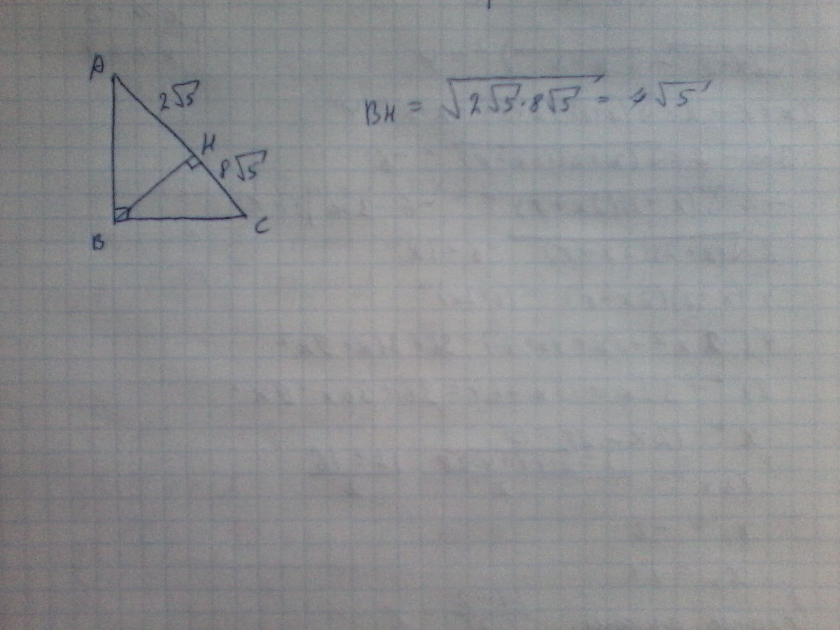 проекции катетов на гипотенузу равны 2√5 и 8√5. Найдите высоту , проведённую из вершины прямого угла