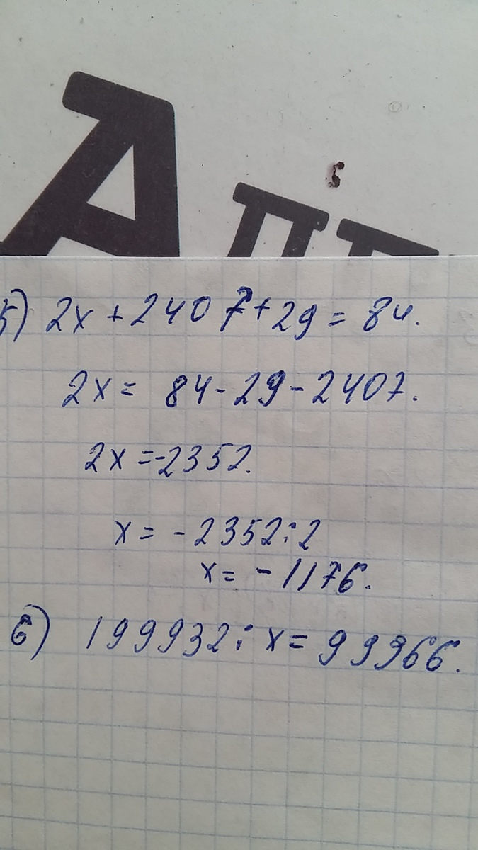 5)2х+2407+29=84 2х+2487=0 2х=-2412/2 х=-1706