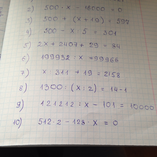 10)512*2-128*х=0 1024-128*х=0 -128*х=-1024 х=8