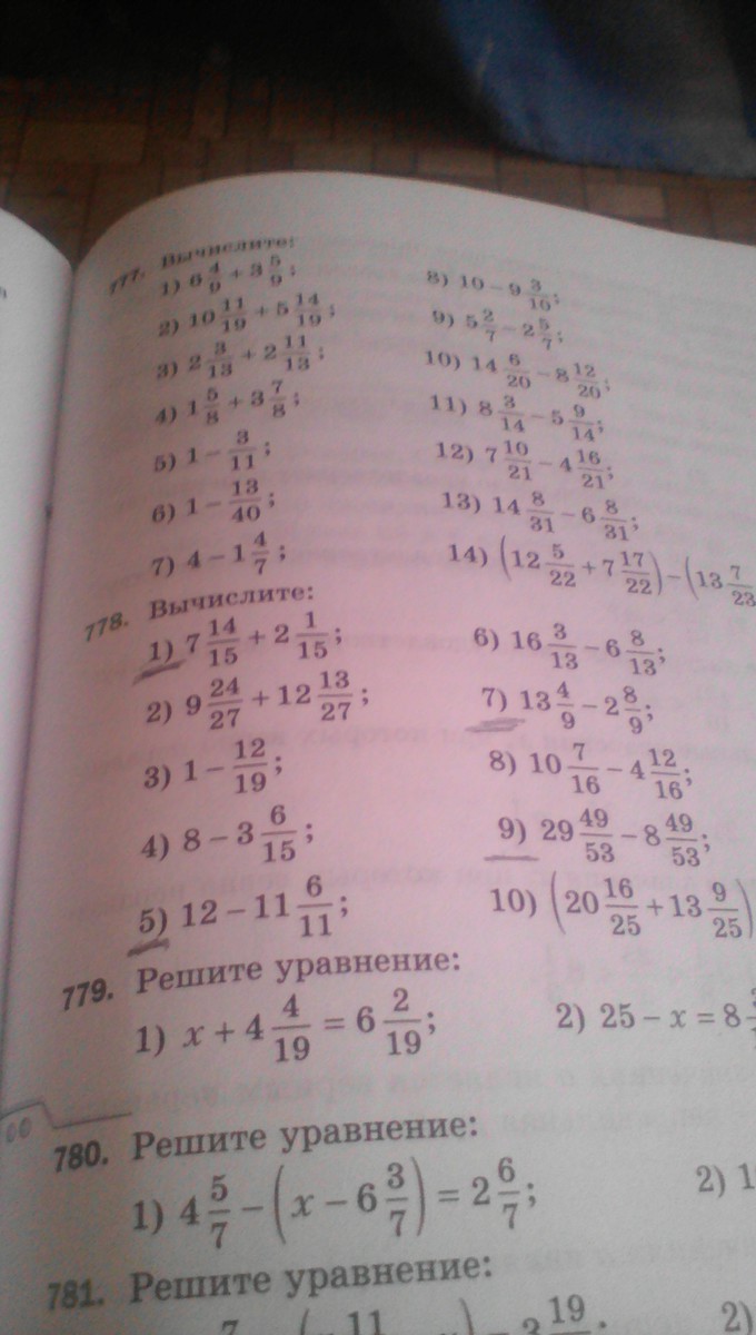 7) = 12 цел. 13/9 - 2 цел. 8/9=10 цел. 5/9