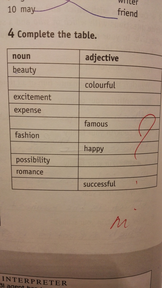 beautiful, colour,exciting,expensive,fame, fashionable, happiness,possible, romantic, success