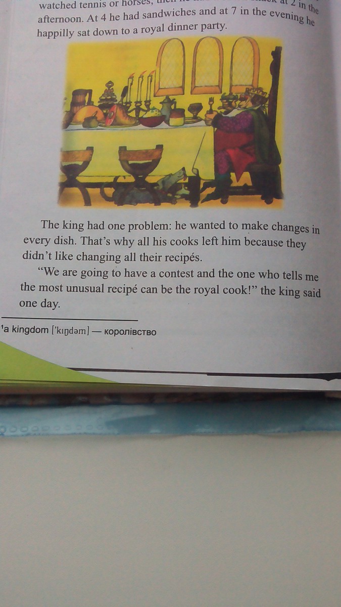 У короля была одна проблема: он хотел изменить все блюда. По этому все его повара покинули его, потому что им не нравилось изменять все рецепты.