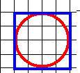 Площадь круга S= π*R² ~ 3.14 см², а у квадрата S= a² = 4 см²