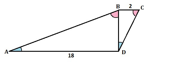 В трапеции меньшая диагональ перпендикулярна основаниям сумма острых углов равна 90º. Найдите площадь трапеции, если ее основания 2 и 18.