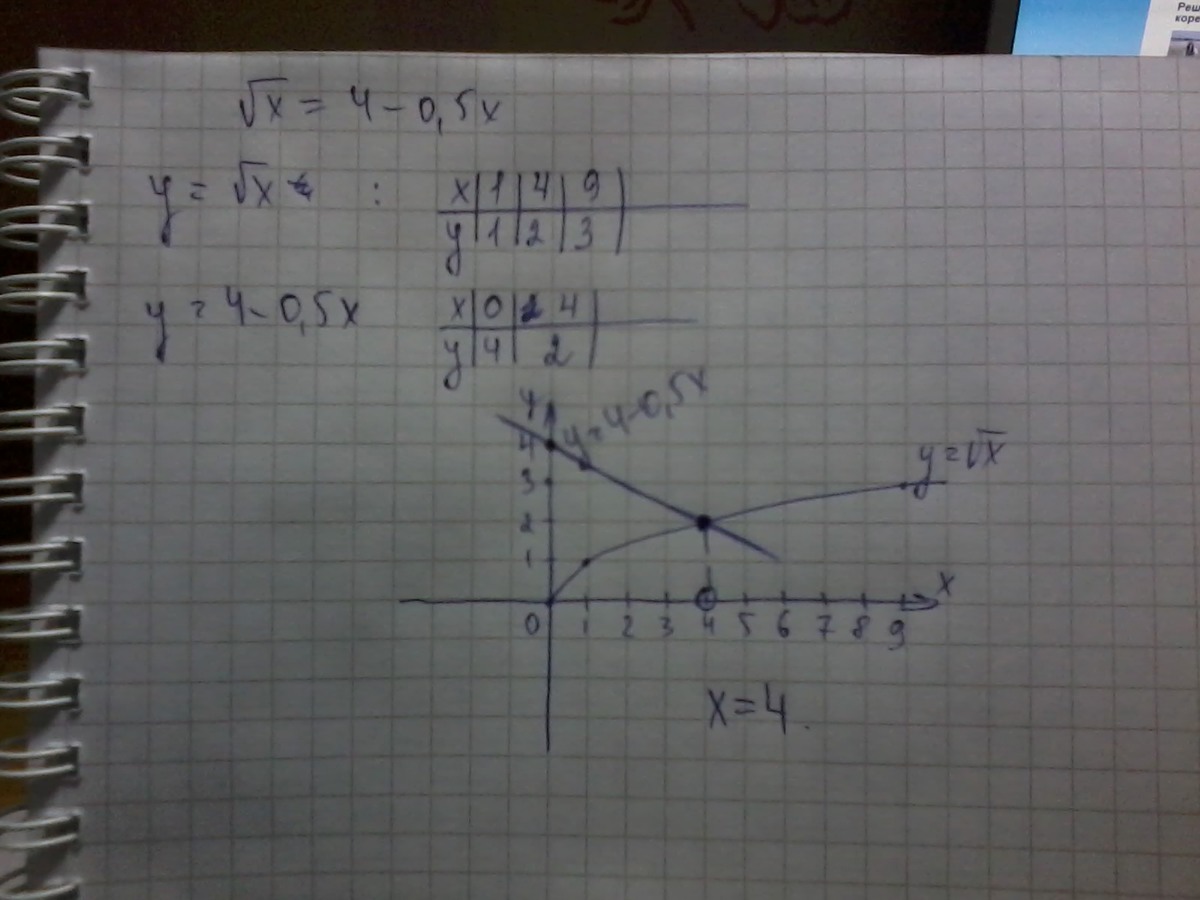 Сначала строим оба грфика функции(показано во вложении). и пересечение этих двух графиков является корнем уравнения. Ответ: х=4