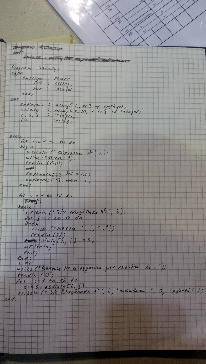 В двумерном массиве хранится информация о зарплате 20 человек за каж- дый месяц года (первого человека — в первой строке, второго — во вто- рой и т. д.). Составить программу для расчета общей зарплаты, полученной за год любым человеком, информация о зарплате которого представлена в массиве.