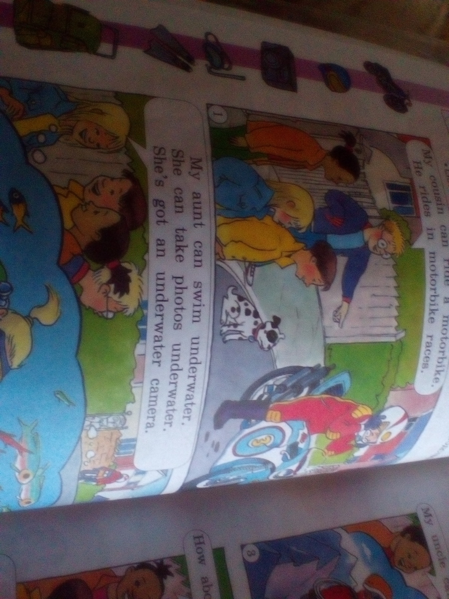 Моя тетя может плавать под водой. Она может фотогрофиравать под водой. У нее есть подводная камера.