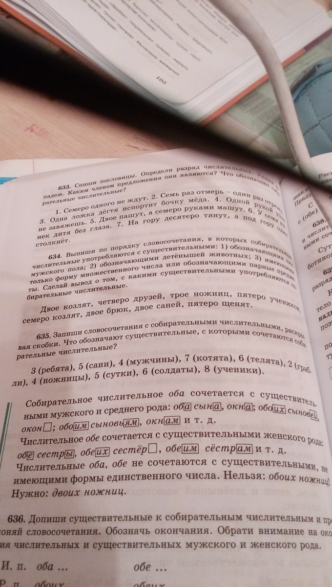 , семь котят, шесть телят, две грабли, четыре ножницы, пять суток, шестеро солдат, 8 учеников