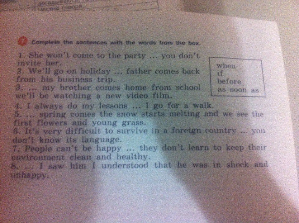 1.if 2.when 3.as soon as 4.before 5.when 6. if 7.before 8.when