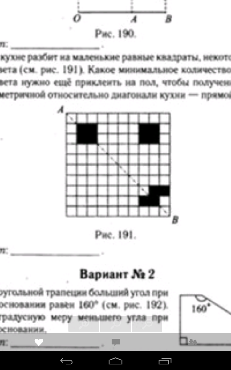 Пол на кухне разбит на маленькие разные квадраты,некоторые из них черного цвета. Какое минимальное количество квадратов черного цвета нужно еще приклеить на пол, чтобы полученная фигура стала симметричной относительно диагонали кухни - прямой АВ?