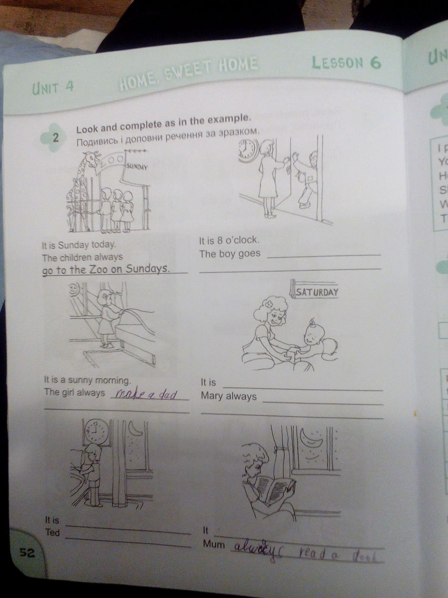 5)It is evening. Mum always read a book