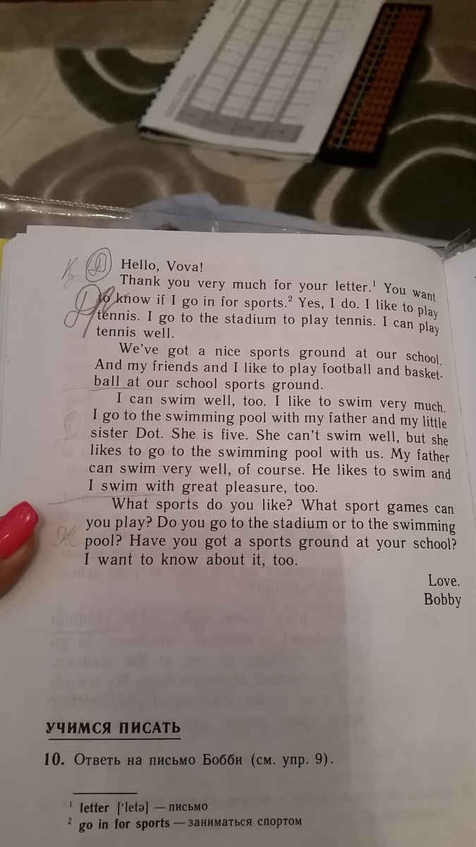 прочитай письмо Бобби и скажи, какими видами спорта он занимается. (пжл помогите, надо срочно перевод