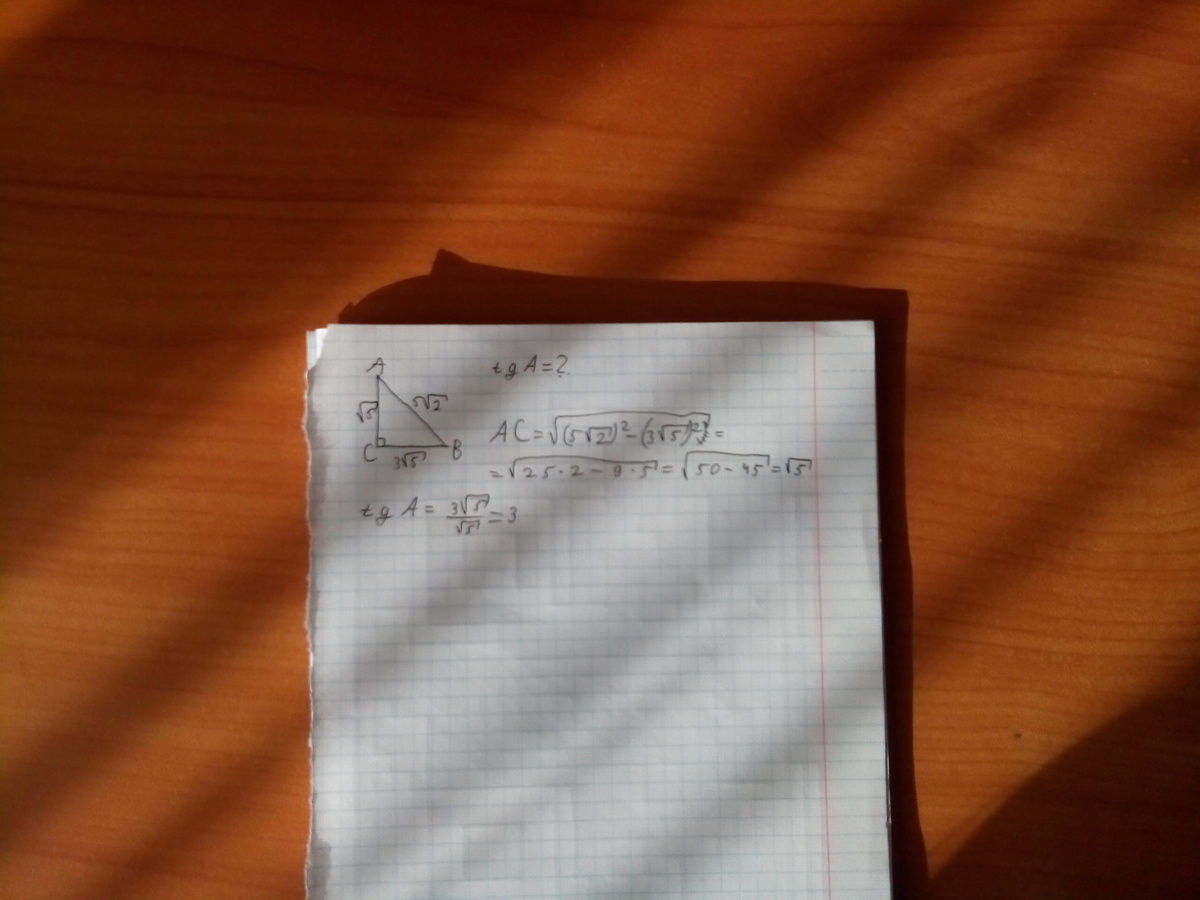 В треугольнике ABC:угол C=90*, BC=3 корень 5, AB=5 корень 2. Найдите tg угла A. найдите tg угла A