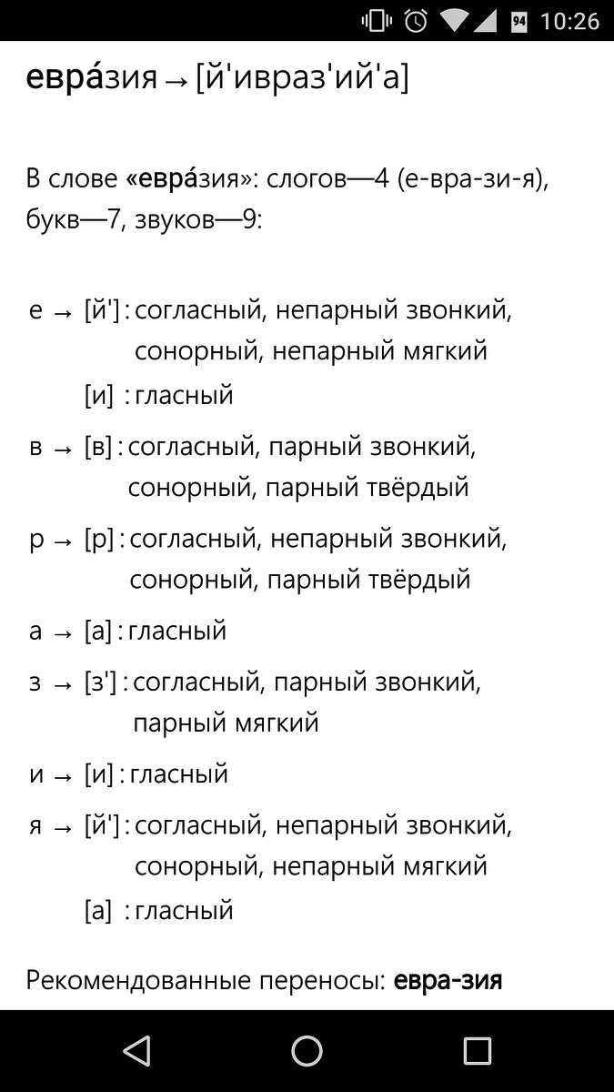 В слове «евра́зия»: слогов—4 (е-вра-зи-я),