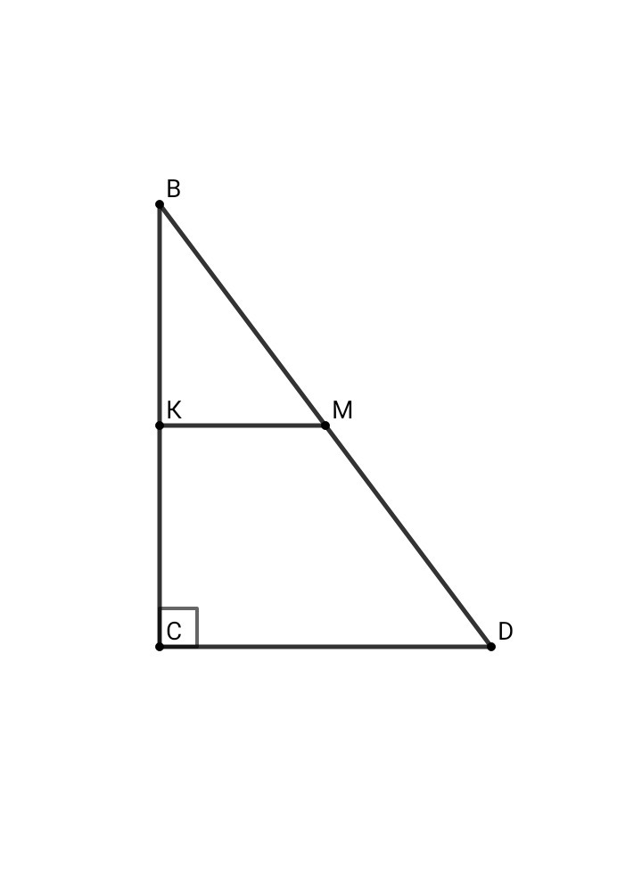 В треугольнике BCD ∠C - прямой, BD - 13 м, BC - 12 м. Найдите длину средней линии MK, если M ∈ BD, K ∈ BC.